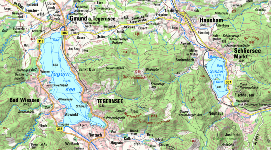 Ein weiteres Highlight der sogenannten "kombinierten" Schummerung ist die gezielte Freistellung von Schriften und Straßen. Dies führt zu einer farbgetreuen und klaren Darstellung dieser kartographischen Elemente.