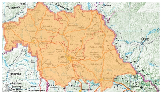 Die Bayernbefliegung 2025 deckt die Regierungsbezirke OberfrankenUnterfrankenMittelfranken und Oberpfalz ab. Den aktuellen Stand der Befliegung und die Gebietsaufteilung finden Sie im BayernAtlas.